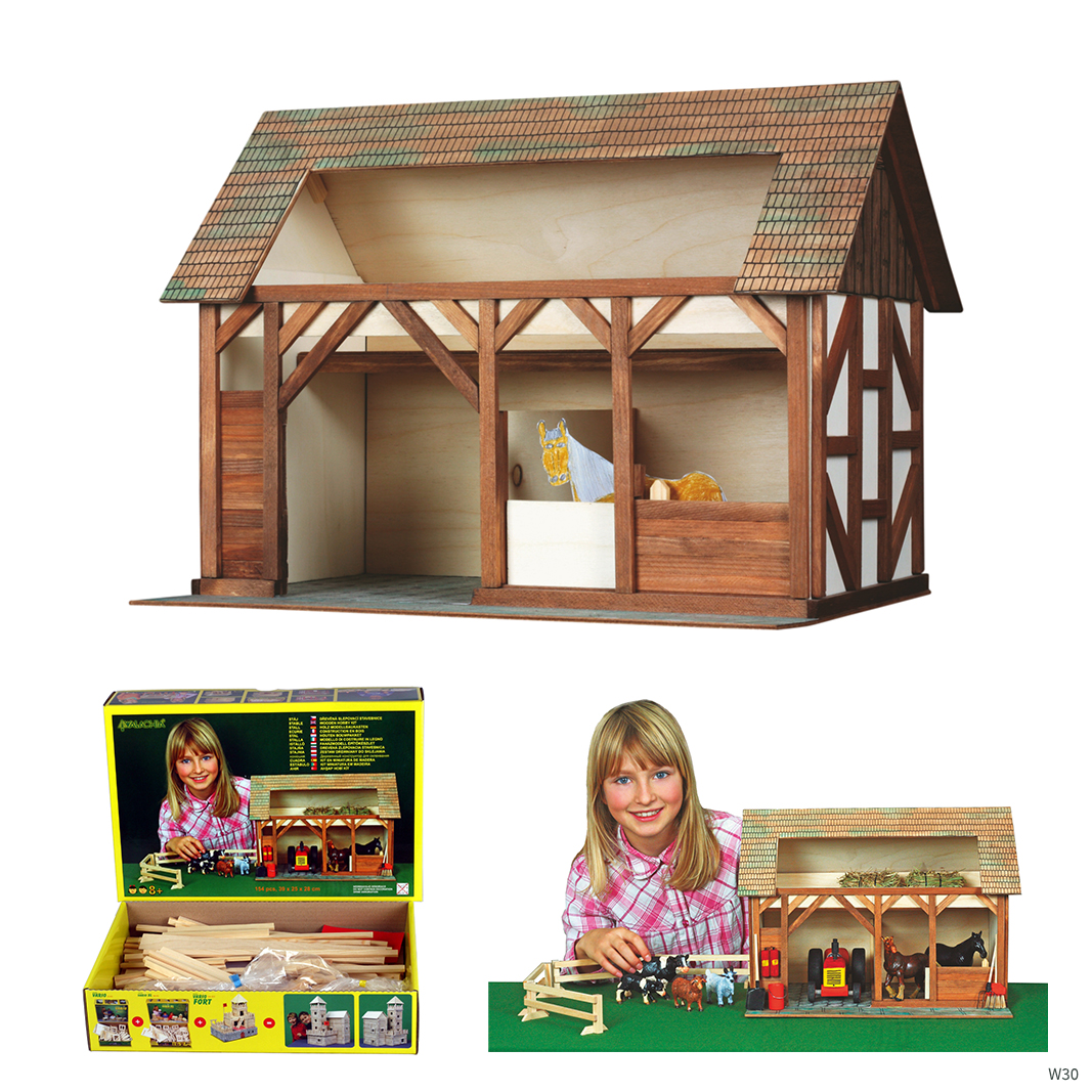 ערכת הבנייה Stable מבית Walachia מציעה חוויית בנייה עשירה ומהנה לילדים שאוהבים ליצור, להרכיב ולבנות מחדש. החלקים מיוצרים מעץ אשור אירופי טבעי ואיכותי, ומאפשרים הרכבה, פירוק ובנייה חוזרת של מבנים מרשימים – שוב ושוב.