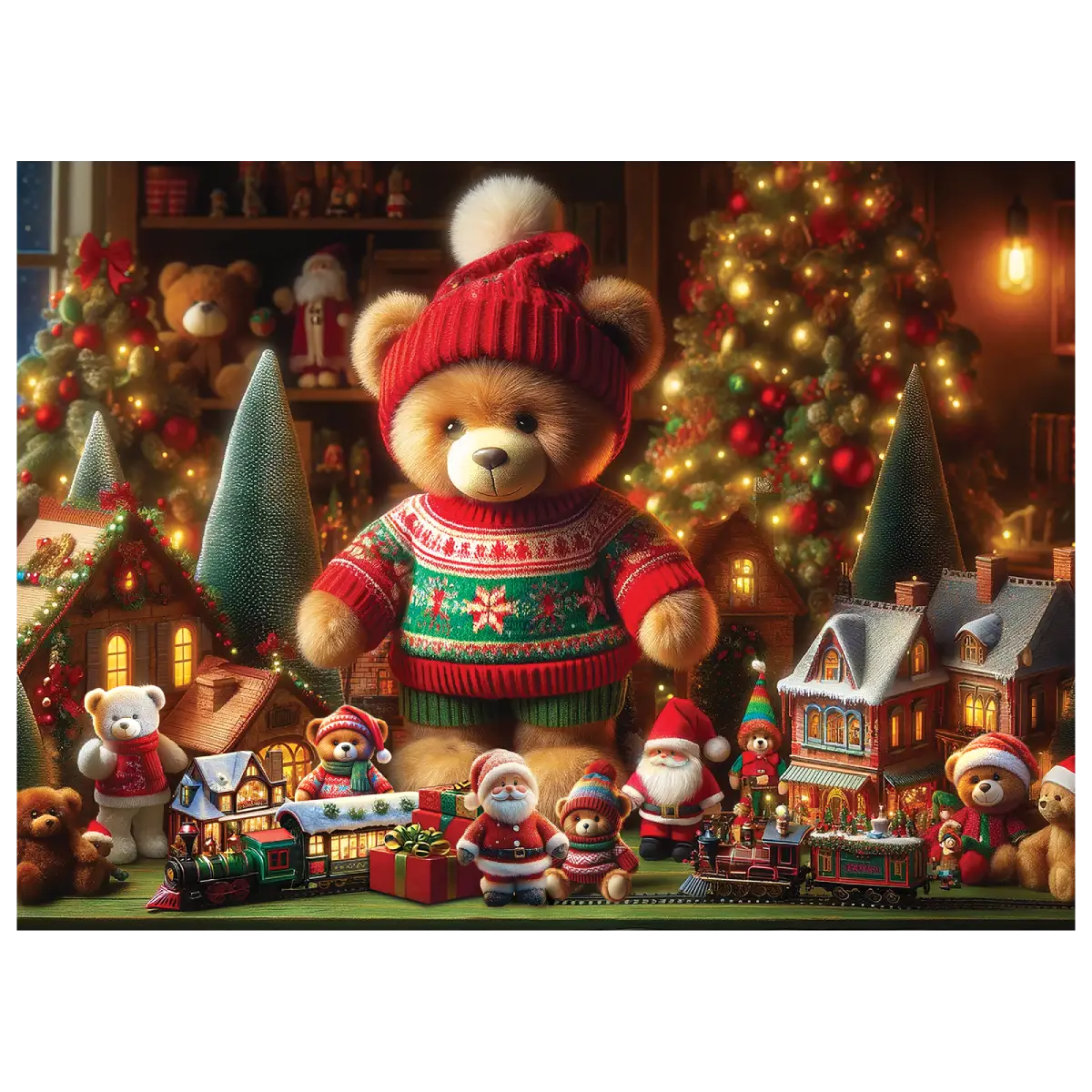 פאזל עץ חגיגי בן 1000 חלקים בכיכובו של דובי מתוק בלבוש חג המולד. עיצוב חמים, מלא שמחת חג ופרטים מרהיבים – מושלם לאוהבי הפאזלים והקסם של עונת החורף.