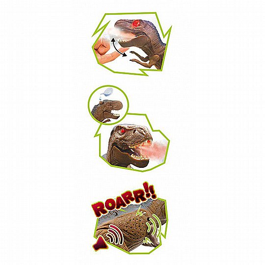הכירו את דינוזאור הטי-רקס על שלט רחוק שמביא את עולם הפרהיסטוריה ישירות אליכם! באורך של 31 ס"מ, הדינוזאור מעוצב בצורה ריאליסטית ומרשימה, עם גפיים מפרקיות הנעות בצורה חיה ואפקט ייחודי של נשימת עשן שמוסיף לחוויית המשחק.