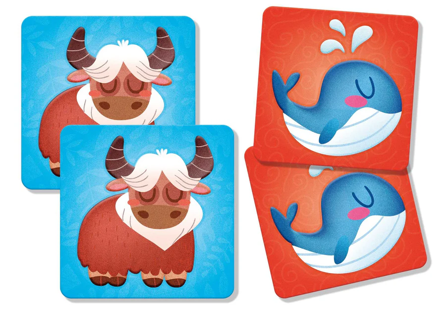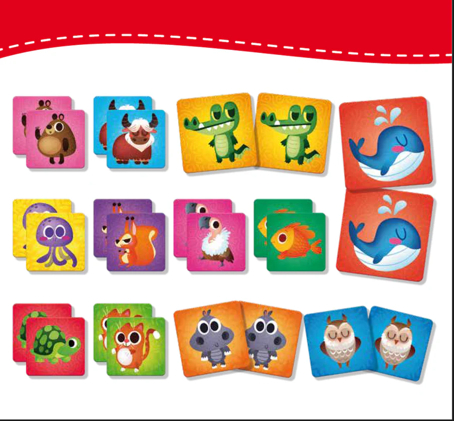 המשחק כולל 24 כרטיסים מחוספסים שמגרה את חוש המגע ומעודדים את הקטנטנים לפתח זיכרון, קשב וריכוז, מוטוריקה עדינה, קשר עין–יד וזיהוי צבעים.