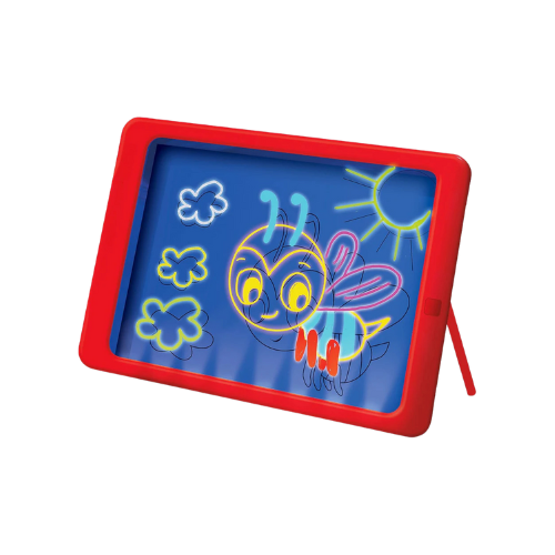 לוח ציור מואר עם 8 נורות לד, 30 כרטיסי למידה ו־3 טושים פלואורסצנטיים. מאפשר לילדים ליצור, למחוק ולצייר מחדש תוך פיתוח יצירתיות, מוטוריקה ודמיון – מתאים לגיל 3+.