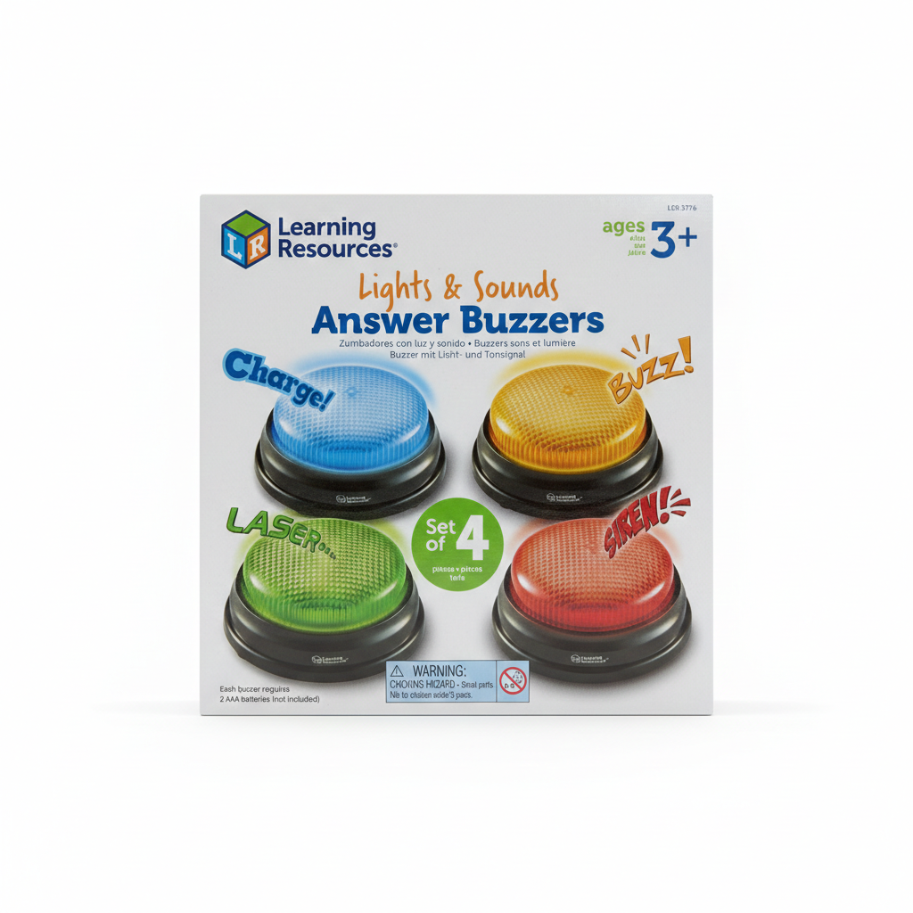 ערכת לחצני תשובה מוארים עם סאונד כוללת 4 לחצנים צבעוניים שמספקים חוויית חידון אינטראקטיבית לכל כיתה או משחק משפחתי. כל לחצן נדלק באור ומפיק צליל כשנלחץ, מה שמוסיף התרגשות ותחרותיות לכל פעילות.