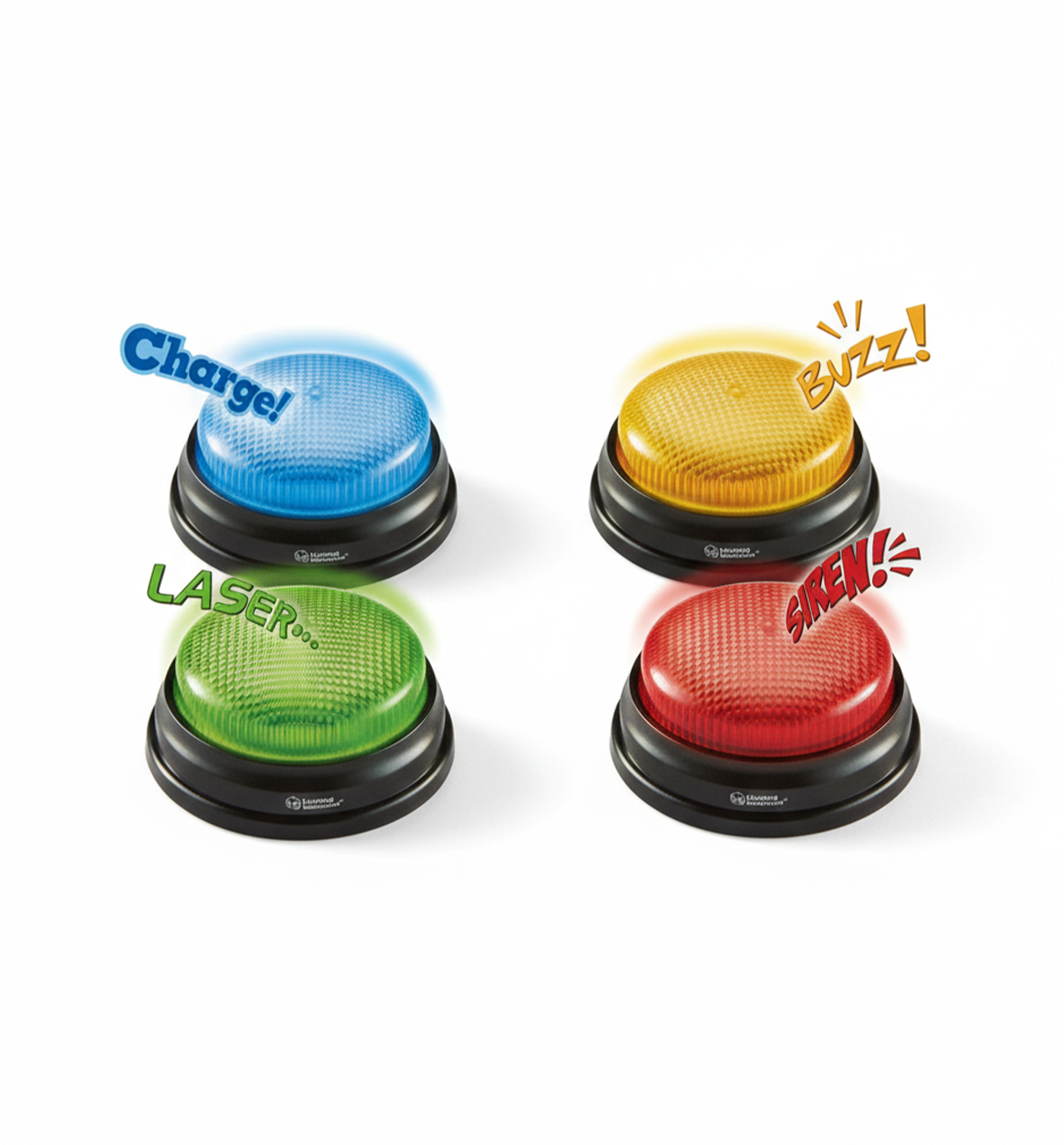 עשו כל חידון או משחק תחרותי כיפי ומושך! 4 לחצנים מוארים עם צליל, המיועדים למשחקי כיתה, משפחה או חברים. מתאים לילדים מגיל 3 ומעלה.