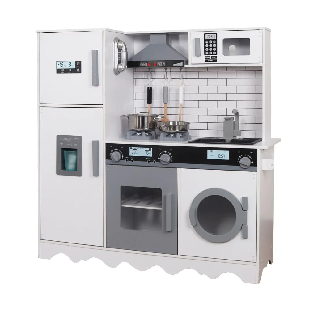 המטבח לילדים דגם נועה משלב עיצוב מודרני ואיכות גבוהה בעץ. הצבעים הלבנים והחומים מוסיפים מראה אלגנטי שמתאים לכל חדר משחקים. המטבח מצויד בכיריים, מיקרוגל, תנור, מקרר וכיור עם ברז, יחד עם סט כלי מטבח להשלמת חווית המשחק. מושלם לפיתוח דמיון, יצירתיות ומשחק חיקוי של בישול אמיתי.
