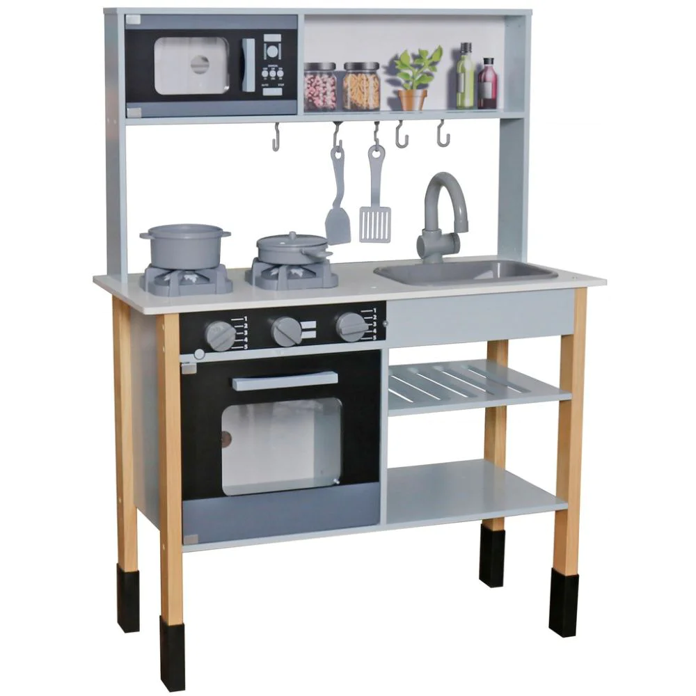 מטבח עץ מהמם לילדים עם אורות וצלילים, כולל תנור, מיקרוגל, כיור וכלי בישול ואפייה! חוויה מהנה, יצירתית ומלאת דמיון – בדיוק כמו של הגדולים.