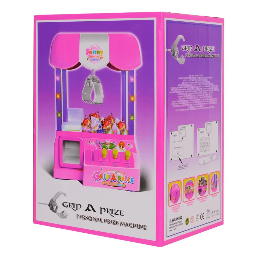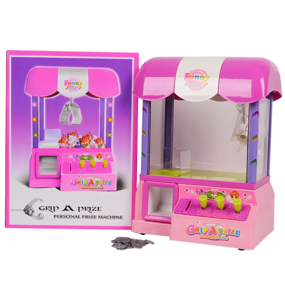 הכניסו את אווירת היריד אל הבית עם מכונת הפרסים הקסומה! פשוט מלאו אותה בסוכריות, מסטיקים או צעצועים קטנים, הכניסו מטבע אמיתי או מטבע משחק (כלול בערכה) והתחילו לשחק.