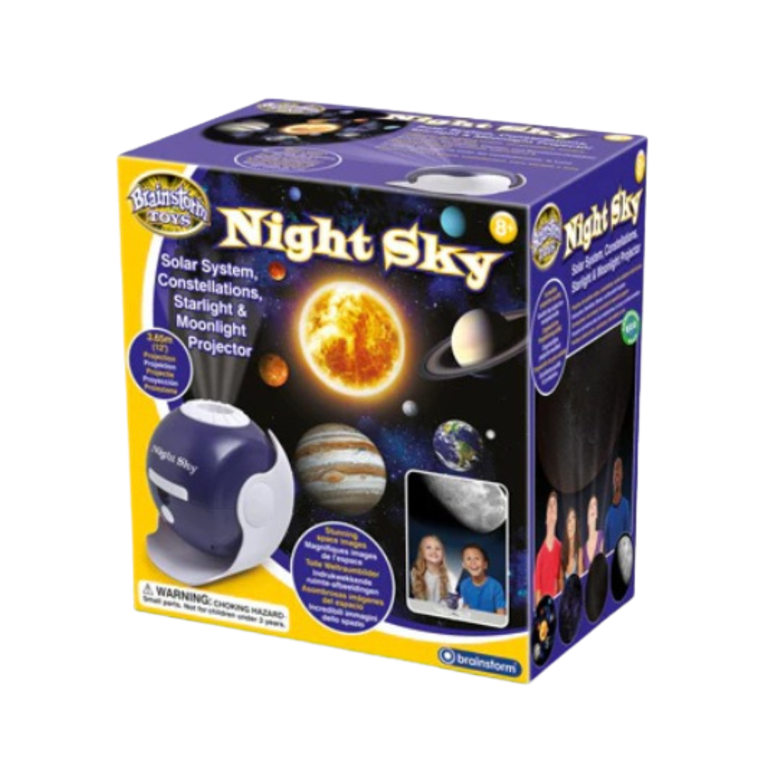 הביאו את הקסם של היקום ישר לחדר שלכם עם מקרן NIGHT SKY מבית Brainstorm! המקרן המרהיב מקרין מעל 20,000 כוכבים, הירח הסופר-מפורט, קבוצות כוכבים של חצי הכדור הצפוני (והדרומי באפשרות הרחבה), וכוכבי הלכת של מערכת השמש – ליצירת חוויית שמי לילה מרהיבה ומחנכת.