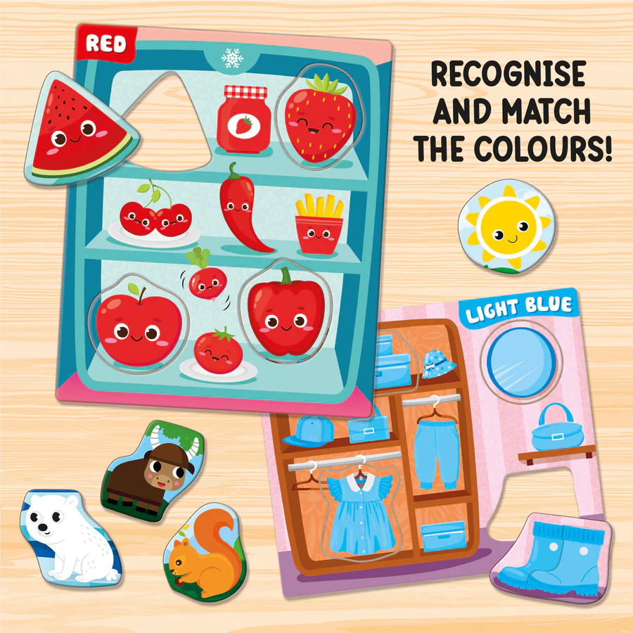 משחק צבעוני ואינטראקטיבי שדרכו הילדים לומדים להתאים פריטים לצבעים בצורה חווייתית ומהנה. עשוי מחומרים איכותיים ובטיחותיים, ומותאם במיוחד לגילאי 1–4 לפיתוח חשיבה, מוטוריקה ויצירתיות.