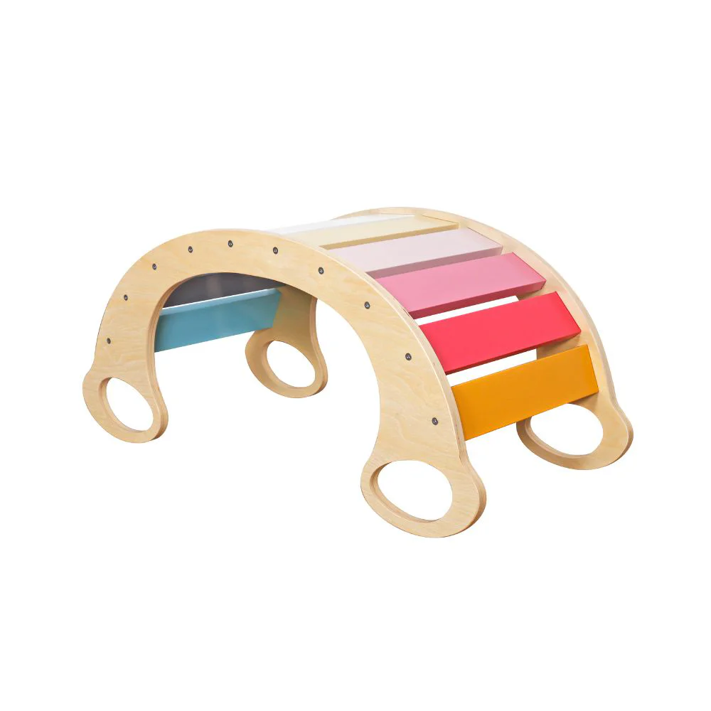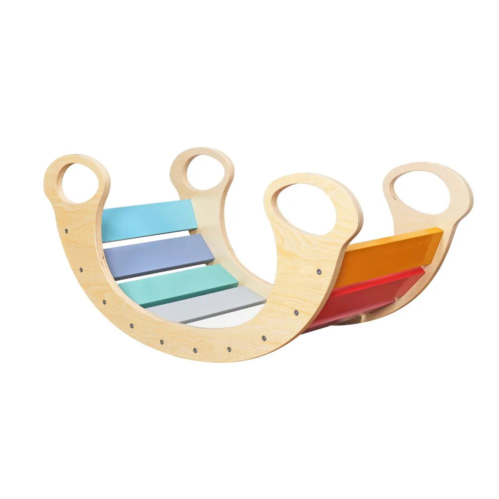 נדנדת איזון צבעונית המתקפלת לגשר טיפוס ומדרגות. משחק התפתחותי לפעוטות המגביר קואורדינציה, כוח ושיווי משקל. מתאימה לילדים מגיל 1 ומעלה, עד 20 ק"ג.