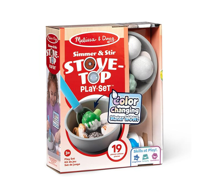 תנו לילדים לחוות את עולם הבישול בצורה מהנה וחדשנית עם סט הכיריים Simmer & Stir מבית Melissa & Doug! סט משחק ייחודי המאפשר "לבשל" באמצעות מים בלבד – ולראות את האוכל משנה צבע ממש מול העיניים.