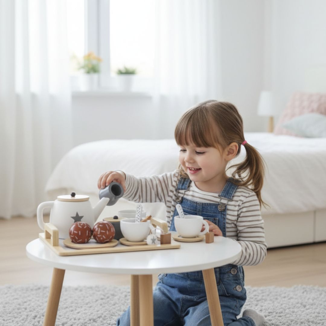 תנו לילדים שלכם להרגיש כמו מארחים אמיתיים עם סט תה מעץ איכותי בצבעים מתוקים ומעוצבים. הסט כולל מגש עם ידיות נוחות, קנקנים, ספלונים, קינוחים ותוספות – הכל מה שצריך לרגעי תה קסומים.