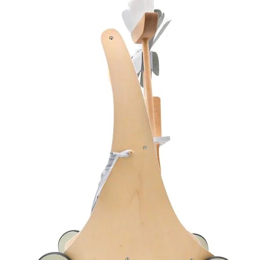 עגלה לכלי ניקוי מעץ לילדים מבית ספירלה בצבעי עץ, אפור ולבן עם גלגלים מונעי החלקה וידית נשיאה לשיפור מיומנות הליכה לפעוטות