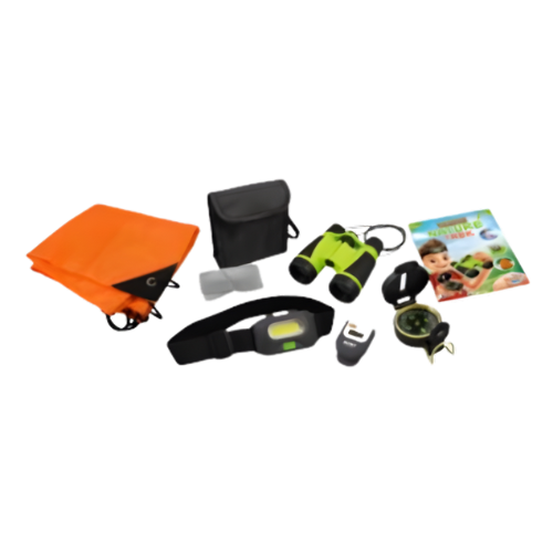 ערכת חקירה מושלמת לילדים אוהבי טבע! כוללת משקפת, מצפן, פנס ראש, מד צעדים ותיק אחסון. אידיאלית להרפתקאות בשטח ולפיתוח סקרנות ויכולות ניווט