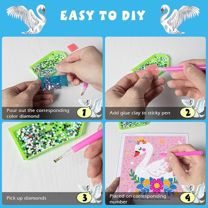ערכת ציור יהלומים נוצצת בעיצוב ברבור