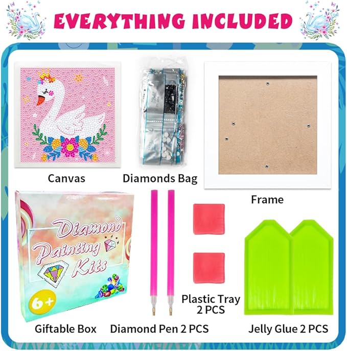 ערכת ציור יהלומים 5D בעיצוב ברבור עדין ויפהפה, מושלמת לכל מי שמחפש פעילות יצירתית, מרגיעה וקלה לביצוע. הערכה מתאימה במיוחד לילדים ולמתחילים – פשוט מדביקים את אבני היהלום על הקנבס לפי הסימון ונהנים מתוצאה מרהיבה!