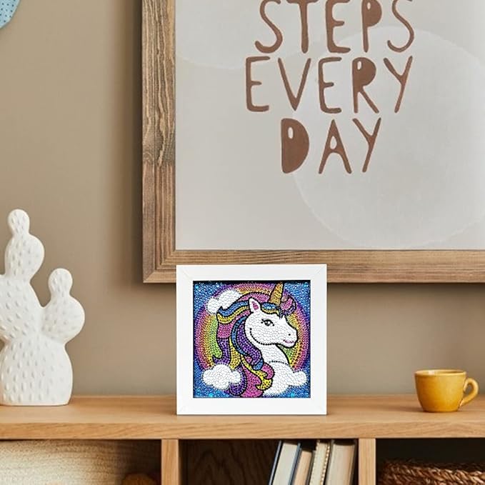 הערכה מהווה רעיון נהדר למתנה ליום הולדת לילדות 🎁, ומציעה זמן איכות משפחתי מהנה. בסיום, מתקבלת תמונת חד קרן נוצצת ומקסימה שניתן להניח על שולחן, בחדר הילדים או בסלון כקישוט יפה ומיוחד.
