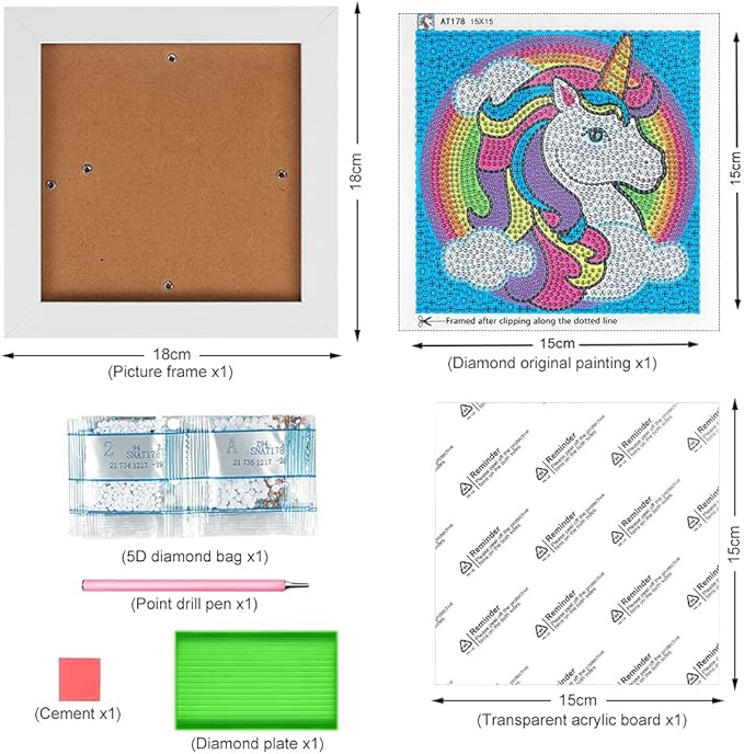 ערכת ציור יהלומים מרהיבה בעיצוב חד קרן קסום, מושלמת לילדים ולמבוגרים שאוהבים יצירה! הערכה כוללת תמונה בגודל 18×18 ס"מ עם מסגרת עץ איכותית, אבני יהלום צבעוניות, עט עבודה, כלי אחסון ודבק – כל מה שצריך כדי להתחיל מיד.