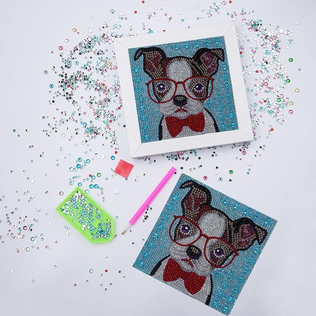 ערכת ציור יהלומים 5D בעיצוב כלב חמוד, מושלמת לילדים, למתחילים ולכל מי שאוהב יצירה! הערכה מגיעה עם כל מה שצריך כדי להתחיל: קנבס איכותי, מסגרת עץ לבנה, אבני יהלום בגדלים שונים, עט עבודה, מגש ומדבקת ג'ל (מסטיק ג'לי).