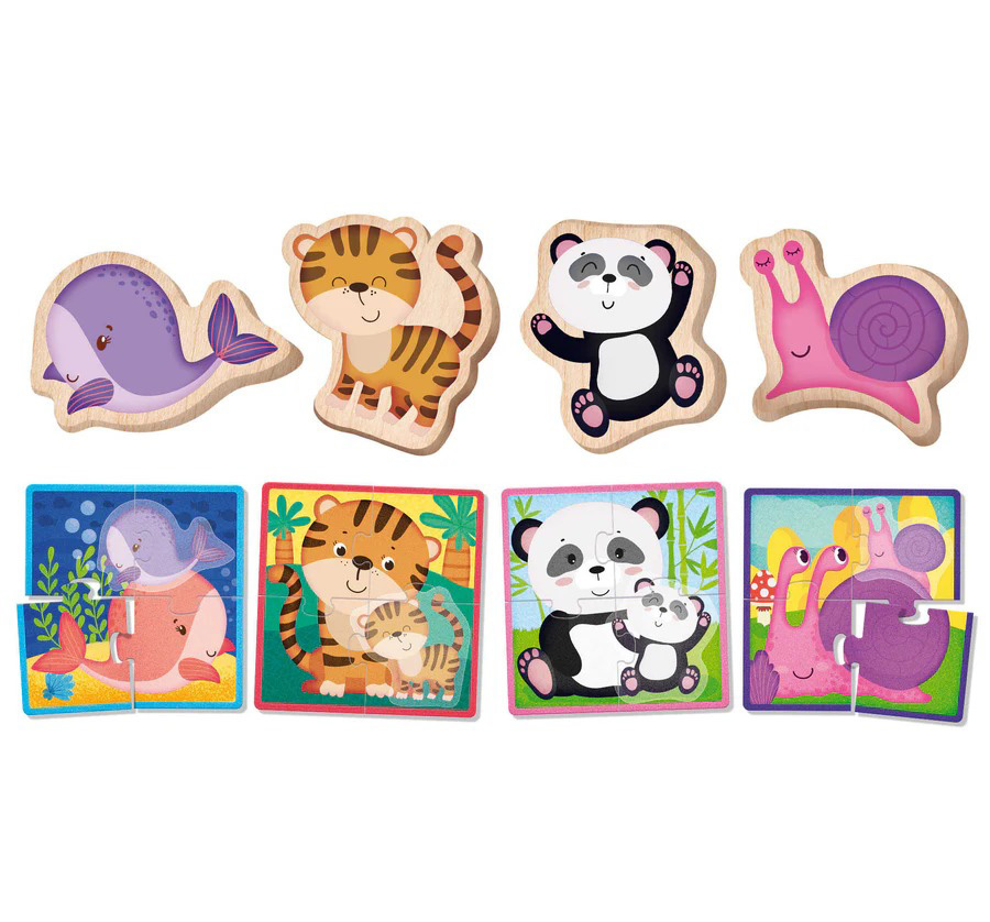 פאזל חיות מעץ בהשראת שיטת מונטסורי הכולל 50 חלקים תלת־ממדיים. המשחק מסייע בפיתוח מוטוריקה עדינה, קואורדינציית יד־עין וחשיבה לוגית, ומתאים לילדים מגיל שנה ומעלה.