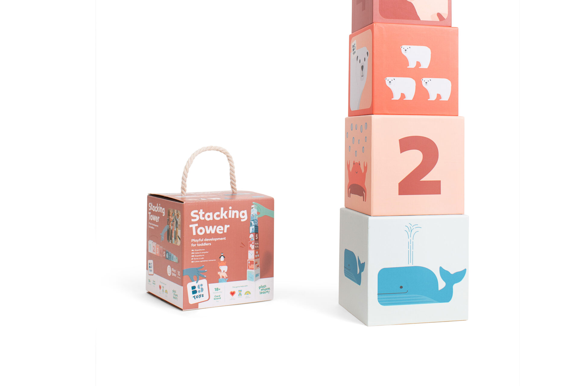מגדל למידה קוביות איכותי – 10 קוביות בצבעים נעימים עם איורים של חיות ארקטיות ומספרים. מסייע בפיתוח מוטוריקה, ראייה מרחבית ולמידה מהנה לילדים מגיל 18 חודשים ומעלה.