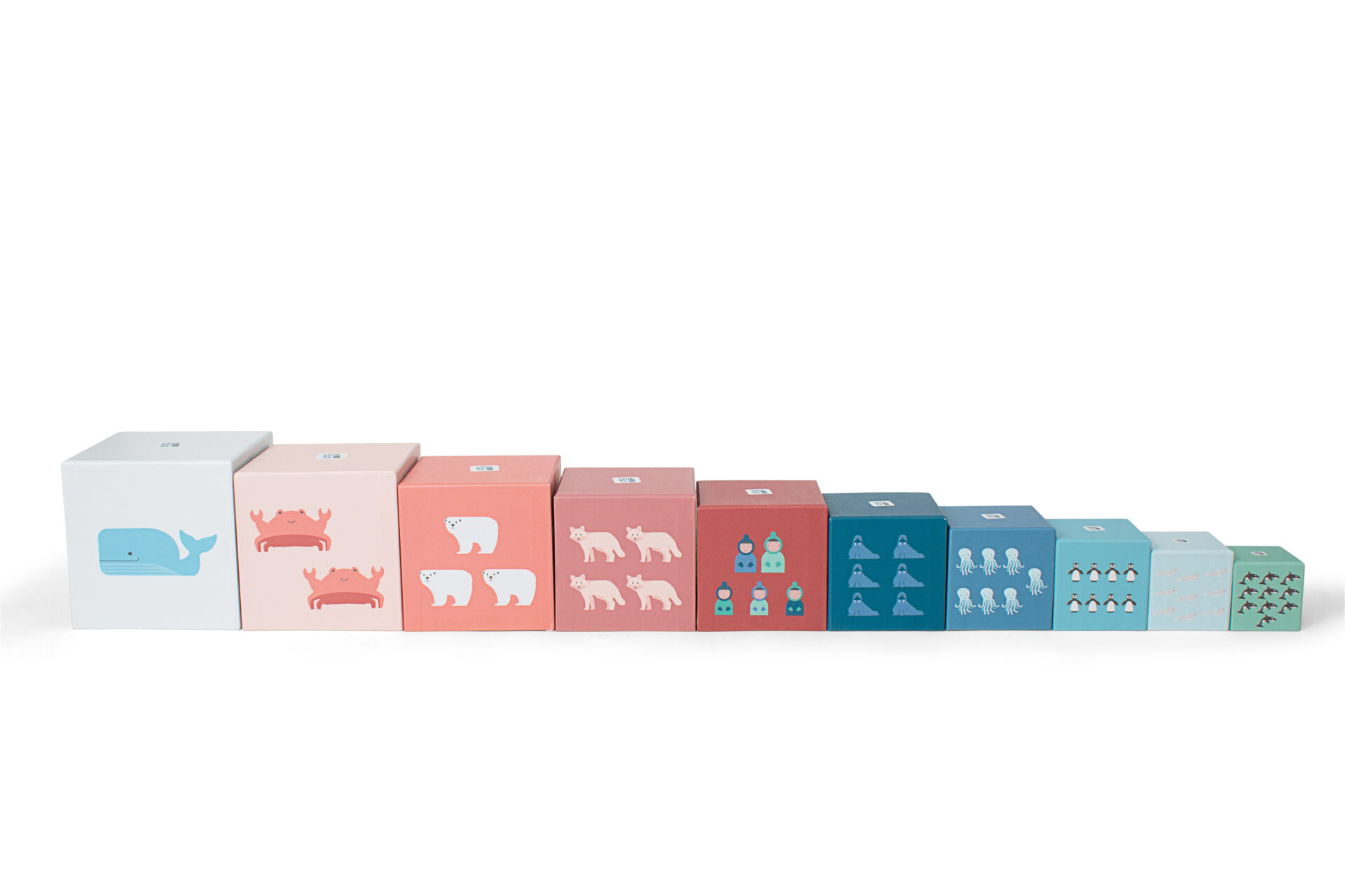 הסט כולל 10 קוביות סופר איכותיות ועמידות בגדלים שונים, עם איורים צבעוניים של מספרים וחיות ארקטיות.