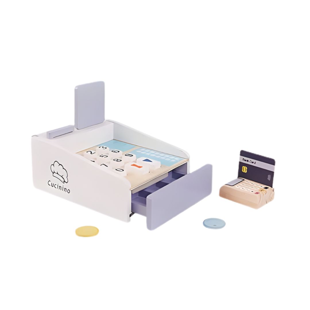 קופת עץ מעוצבת לילדים עם מגירה נפתחת, 12 כפתורים קופצים, גליל נייר לקופה, מטבעות משחק וכרטיס אשראי – בדיוק כמו בקופה אמיתית! הילדים יכולים “לצאת לקניות”, לבחור מוצרים ולשלם בכרטיס או במזומן, תוך כדי משחק מהנה שמפתח את הדמיון, התקשורת והבנת עולם המבוגרים. מתנה מושלמת לילדים מגיל 3 ומעלה שאוהבים משחקי תפקידים וקניות כמו גדולים.