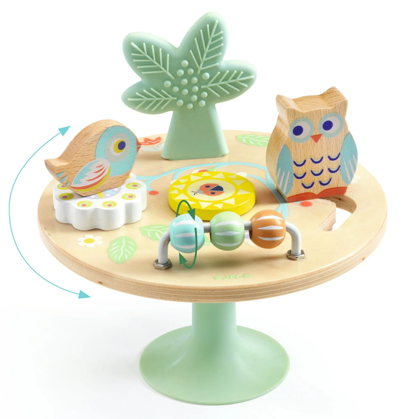 מתקן חושי מעץ בצבעי פסטל רכים, נצמד למשטח למשחק יציב ובטוח. מושלם לתינוקות מגיל 12 חודשים+.